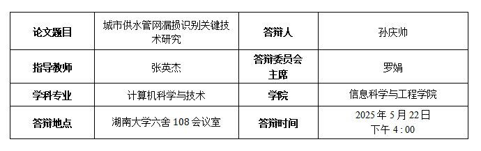 张英杰,孙庆帅,李佳林.基于参数自适应聚类分析的供水管网漏损检测方法[P].授权发明专利: ZL 202111359191.7. (导师第一作者)