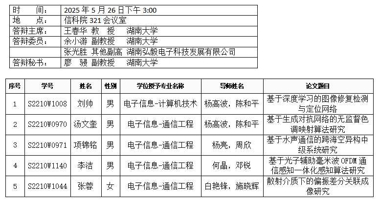 信息无码A片 (通信工程系)2025年5月26日硕士答辩公告