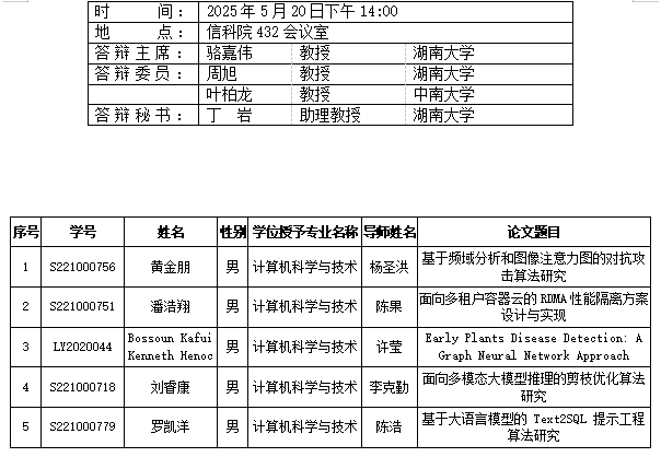 信息无码A片 (安全系)2025年5月21日硕士答辩公告