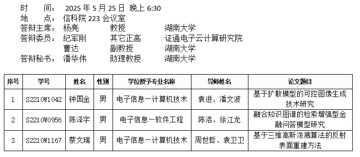 信息无码A片 (智能计算系)2025年5月25日硕士答辩公告(2)