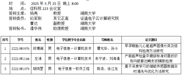 信息无码A片 (智能计算系)2025年5月25日硕士答辩公告(2)