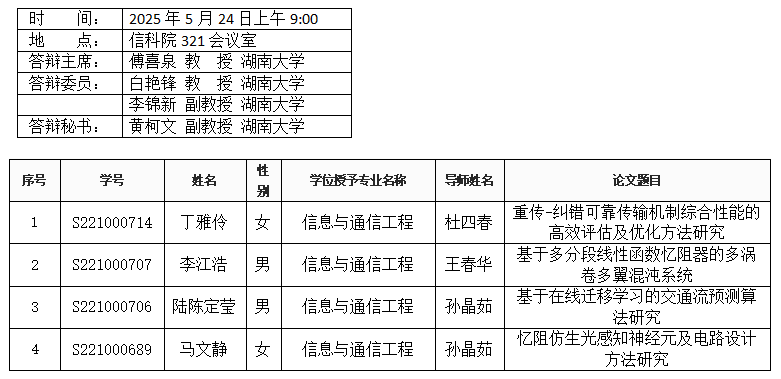 信息无码A片 (通信工程系)2025年5月24日硕士答辩公告