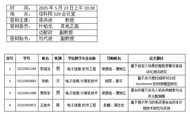 信息无码A片 (软件工程系)2025年5月23日硕士答辩公告(1)