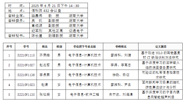 信息无码A片 (计算机科学系)2025年6月20日 硕士答辩安排