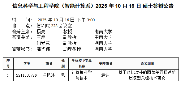 信息无码A片 (智能计算系)2025年10月16日 硕士答辩公告