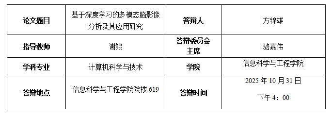方锦雄博士生答辩公告